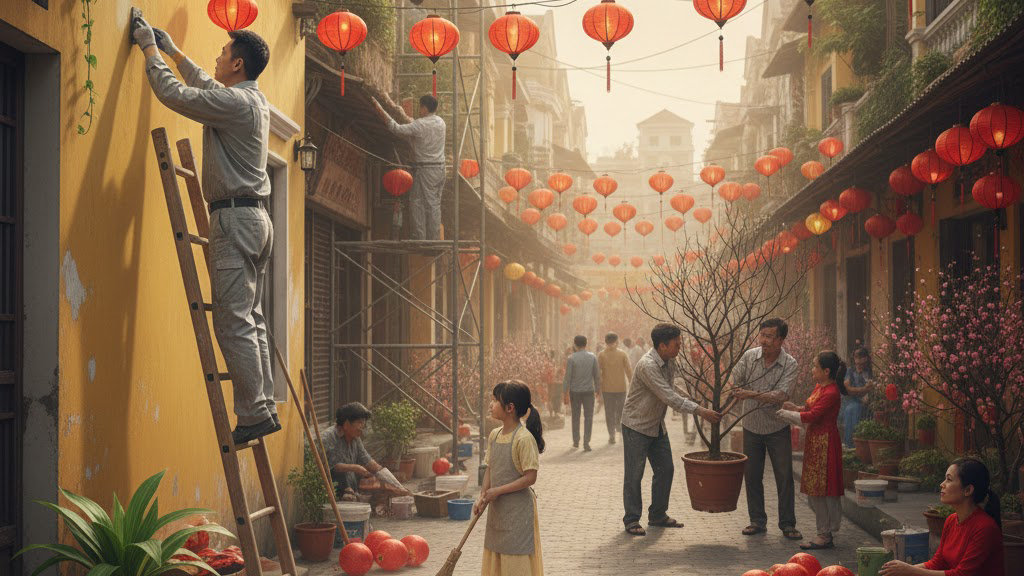 Sửa chữa nhà đón Tết tập trung vào việc làm mới không gian nhanh chóng, tiết kiệm chi phí nhưng vẫn đảm bảo sự ấm cúng và sang trọng. Các hạng mục quan trọng nhất bao gồm: sơn lại tường hoặc dùng giấy dán tường, thay mới rèm cửa, sửa chữa hệ thống chiếu sáng, vệ sinh nhà vệ sinh và tân trang lại bàn thờ gia tiên.